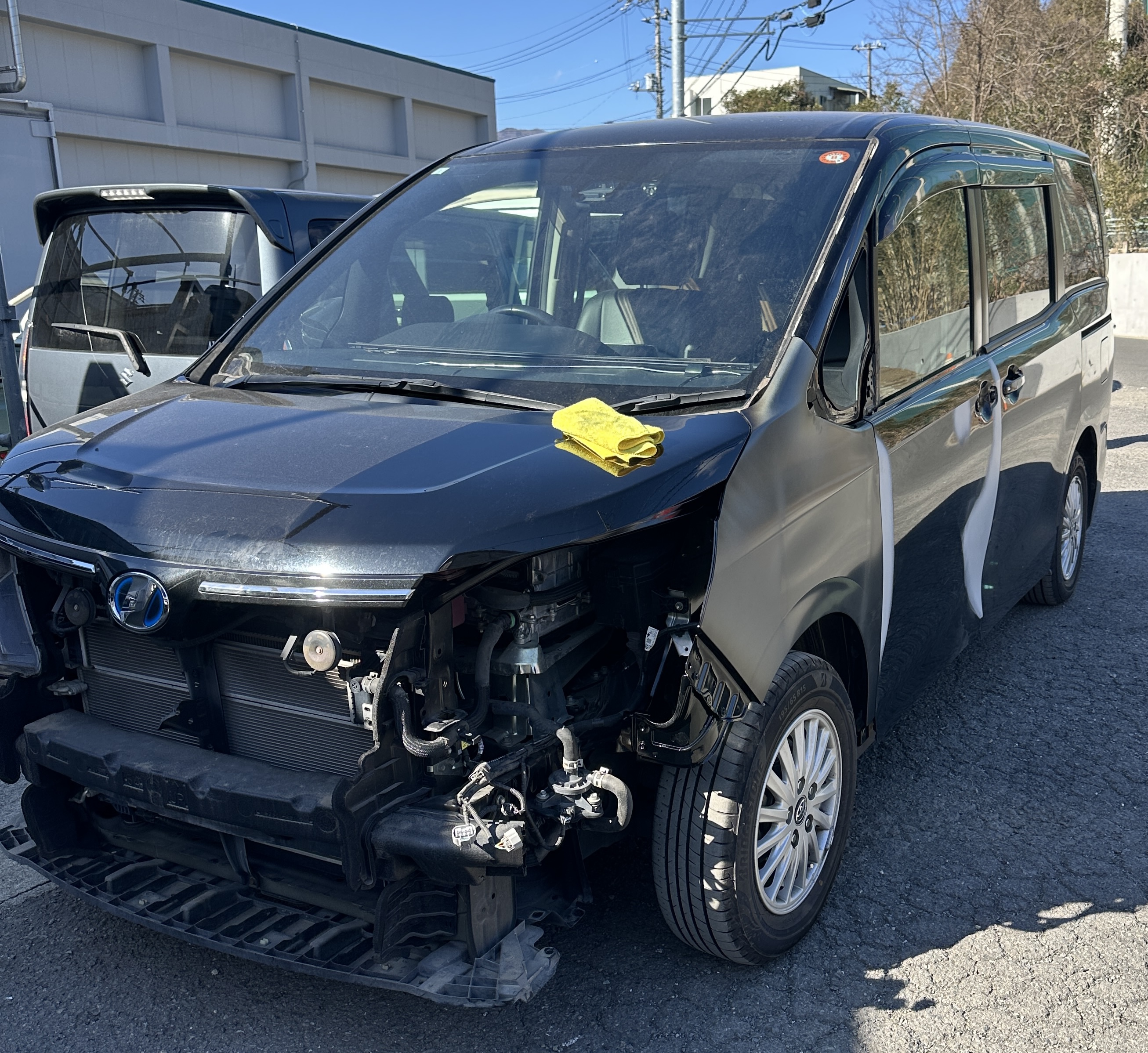 左ヘッドランプ交換・左フェンダー交換・左サポートパネル板金・左フロントドア板金・バンパー交換でお預かりいたしました。