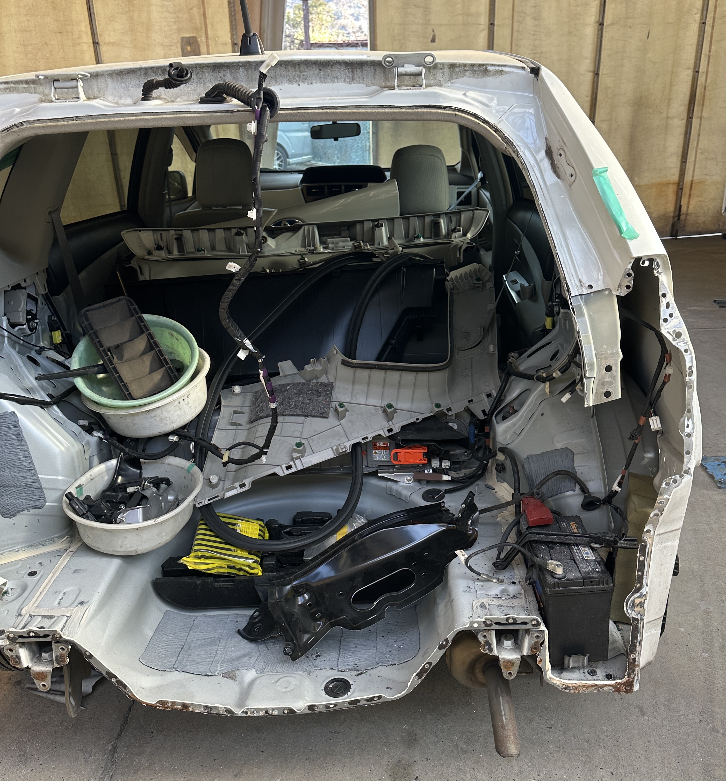 バックドア交換・エンドパネル交換・右テールランプサポート交換・テールランプ交換・クウォーターパネル板金、バンパー交換でお預かりしている。