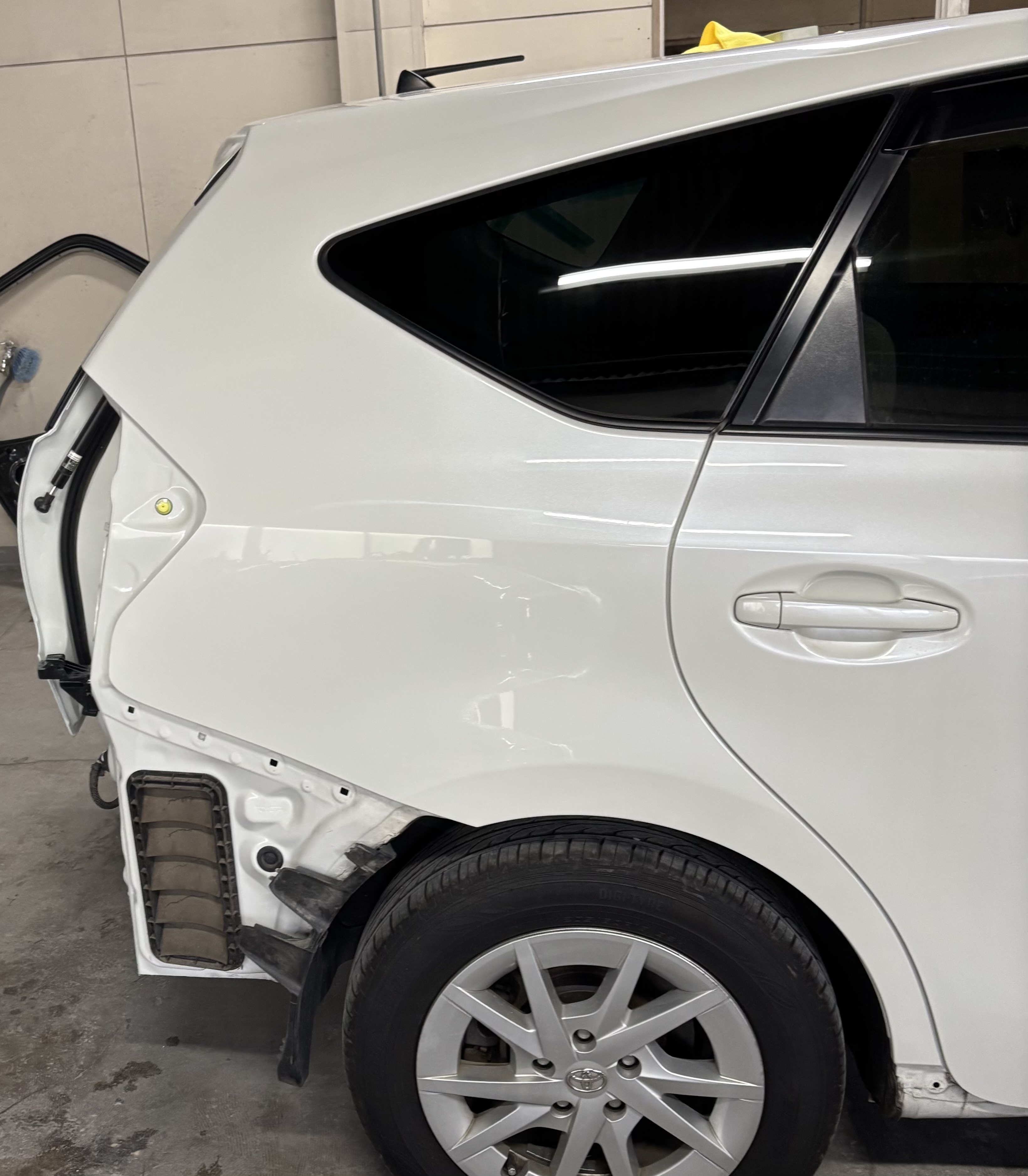 TOYOTAプリウスアルファー磨きが完了しガラスを取り付けました。