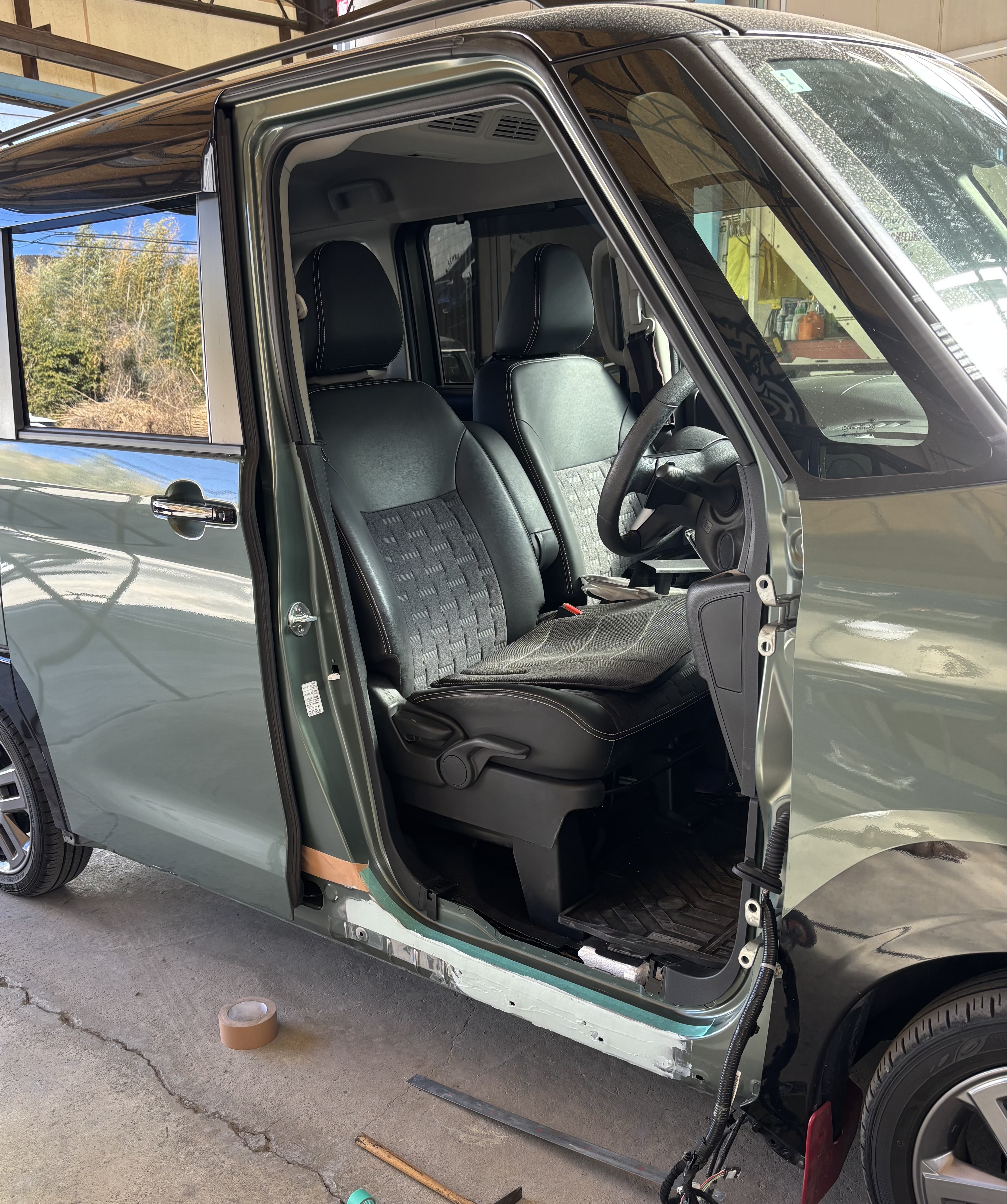 三菱 デリカミニの板金の様子です。