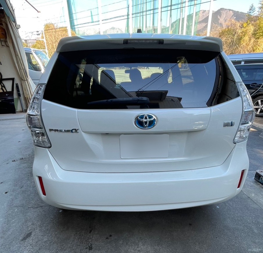 TOYOTAプリウスアルファーの車内清掃と洗車が完了し、完成いたしました。