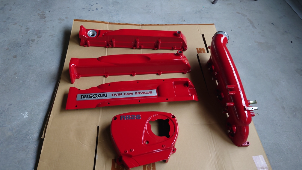 ニッサン スカイライン R32 GTR エンジンカバー 赤色鈑金塗装でお預かりしました。