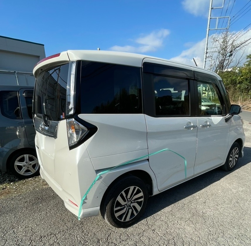 右リアドア交換・クォーター鈑金・リアバンパー交換でお預かりしている