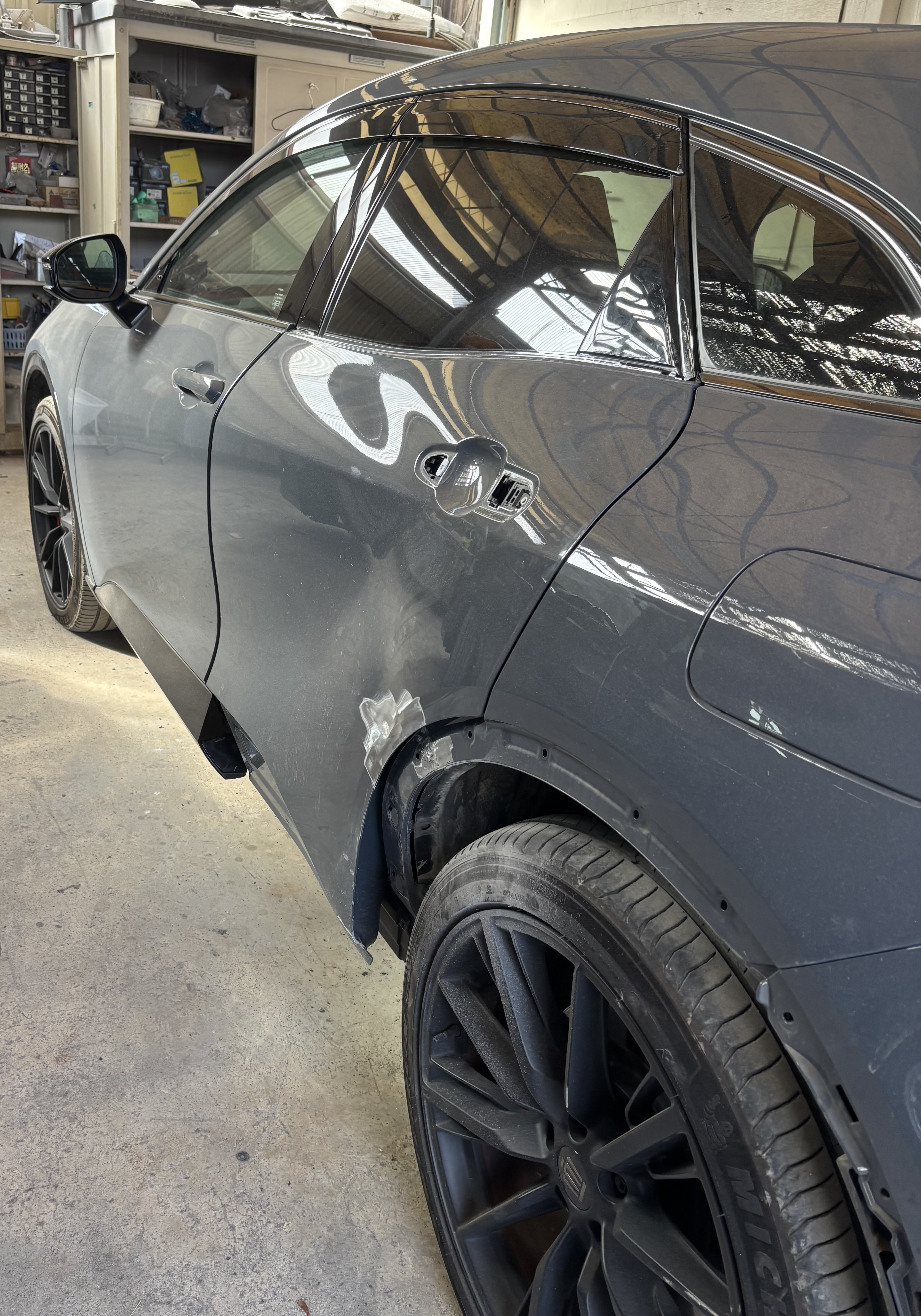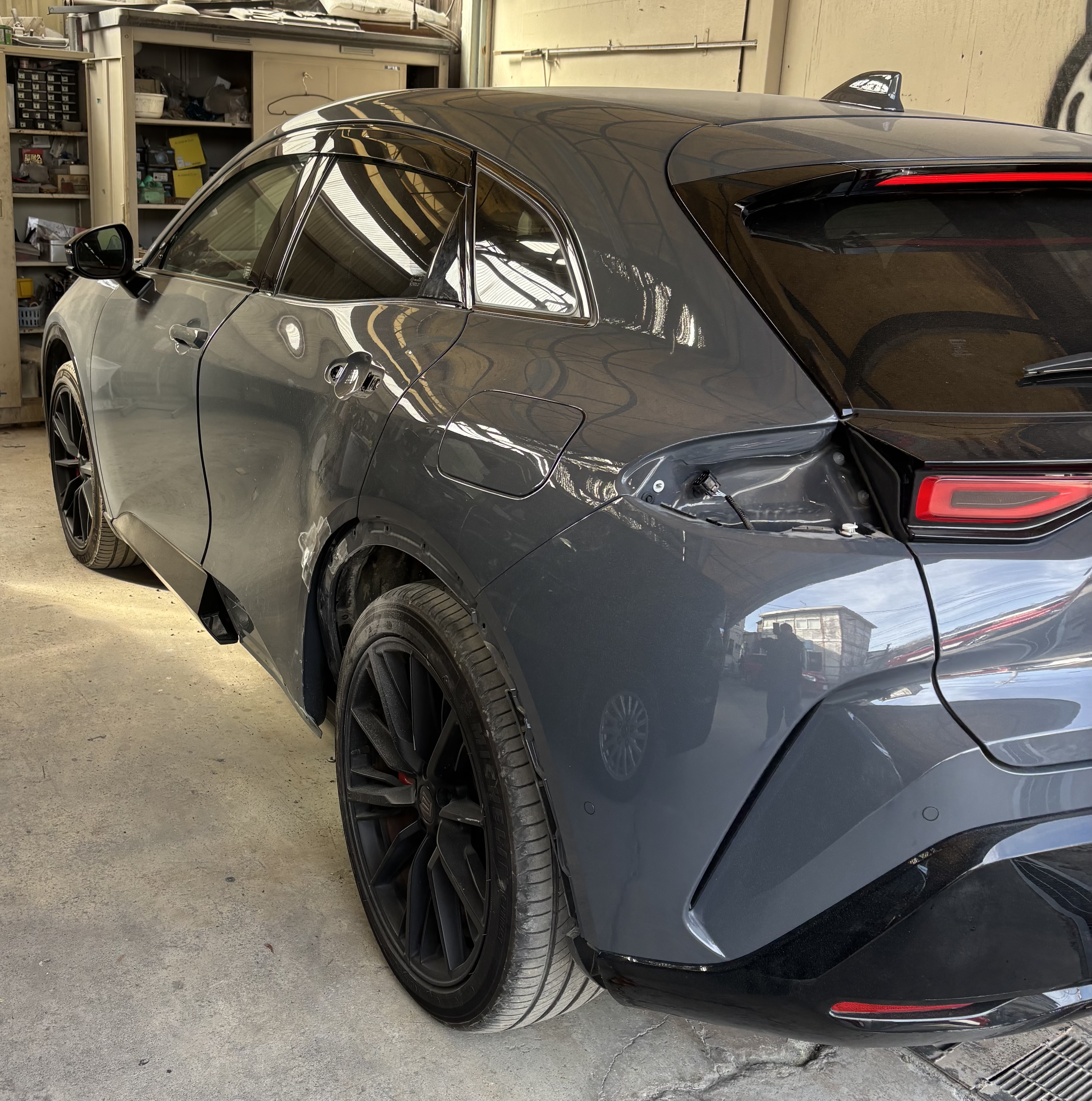 左リアドア板金・左クウォーターパネル板金・モール交換でお預かりしている