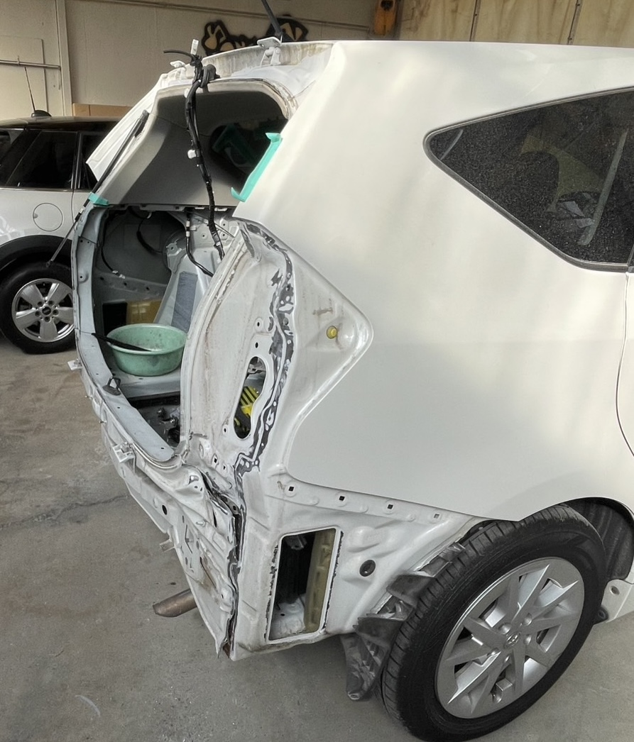 バックドア交換・エンドパネル交換・右テールランプサポート交換・テールランプ交換・クウォーターパネル板金、バンパー交換でお預かりしている。