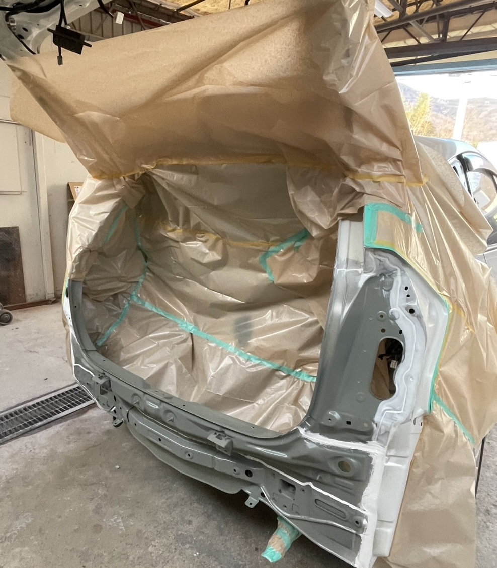 バックドア交換・エンドパネル交換・右テールランプサポート交換・テールランプ交換・クウォーターパネル板金、バンパー交換でお預かりしている。
