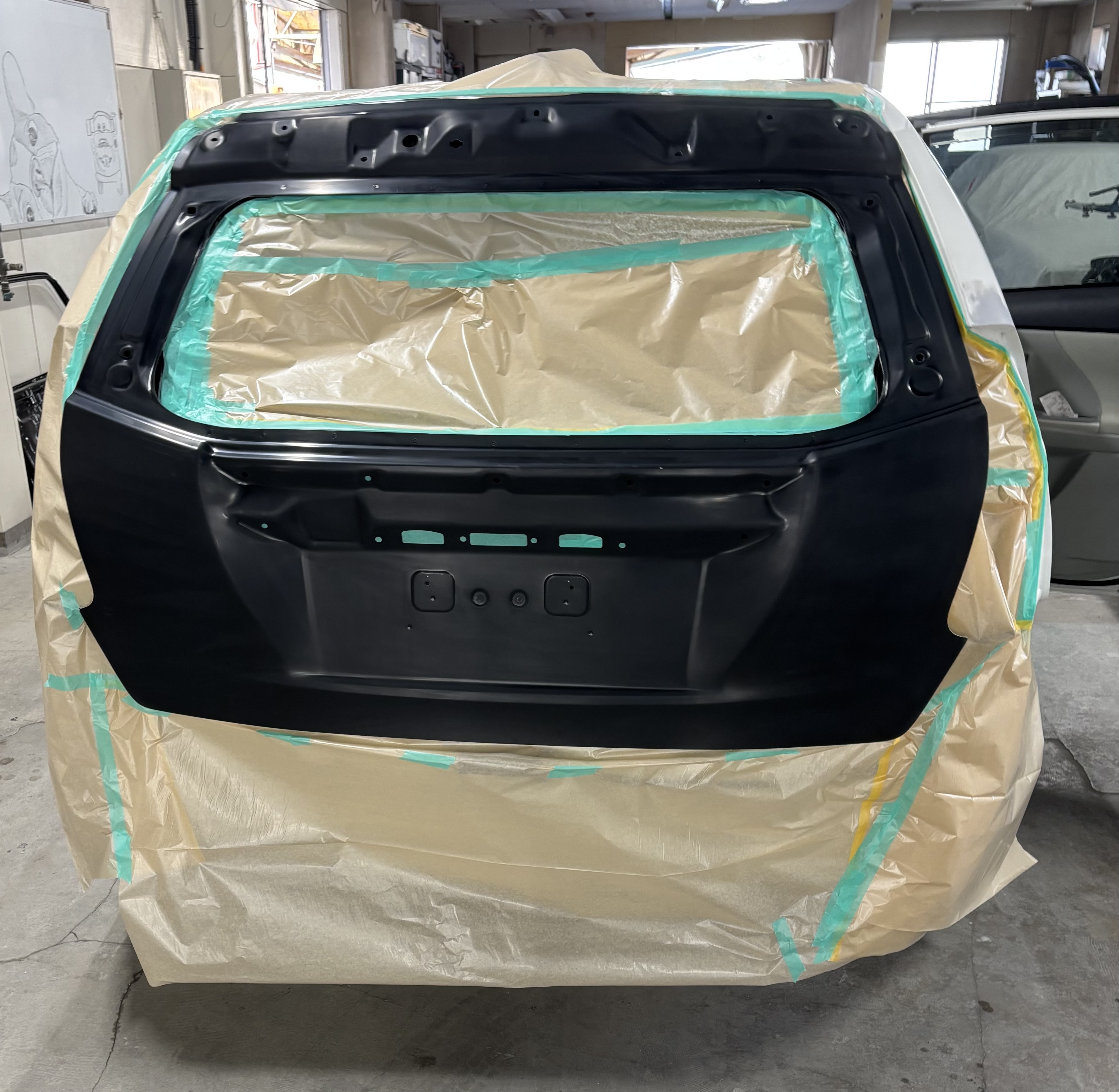 バックドア交換・エンドパネル交換・右テールランプサポート交換・テールランプ交換・クウォーターパネル板金、バンパー交換でお預かりしている。