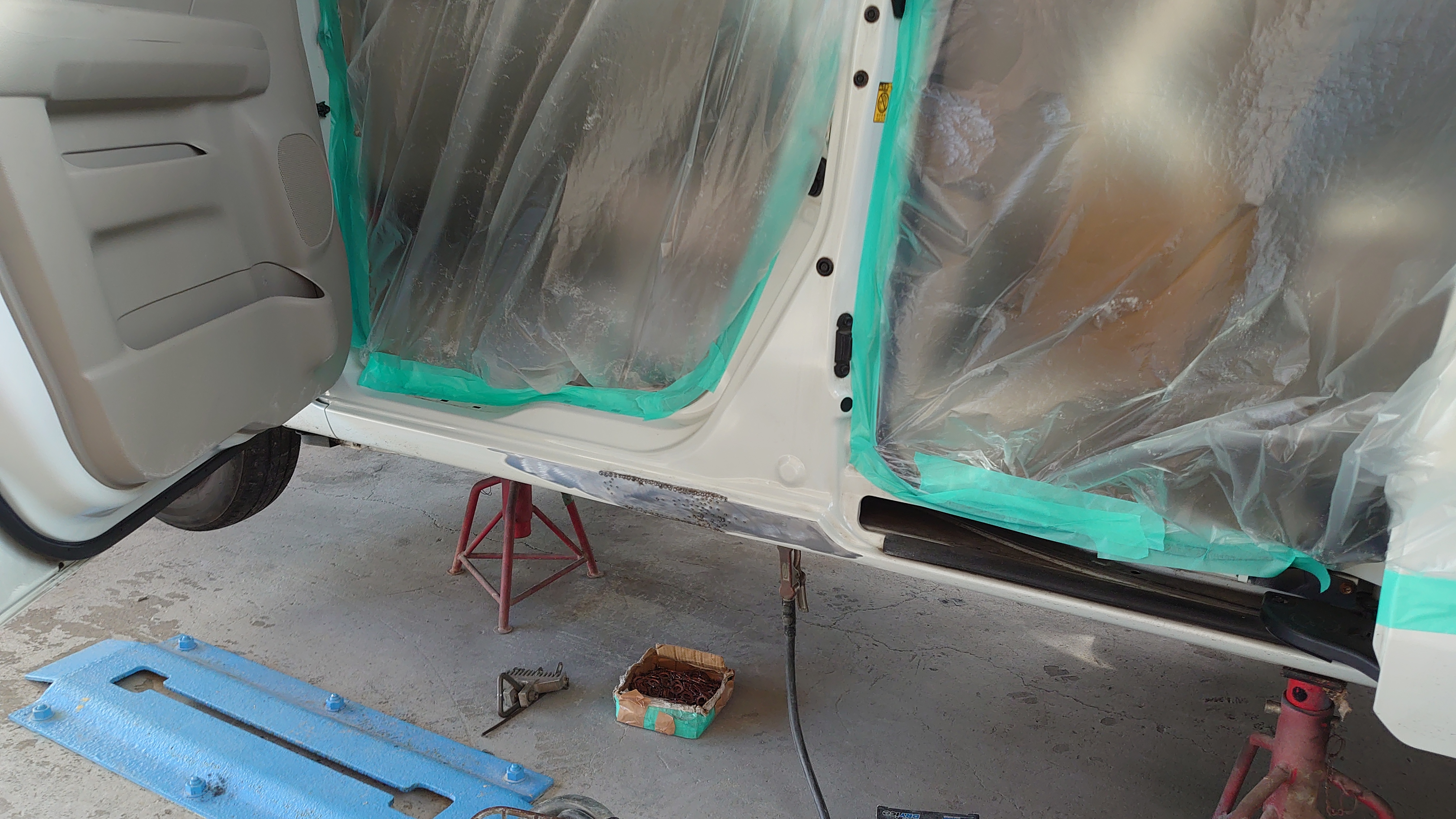 スズキ スペーシア 左サイドシル傷へこみ鈑金塗装修理でお預かりしました。