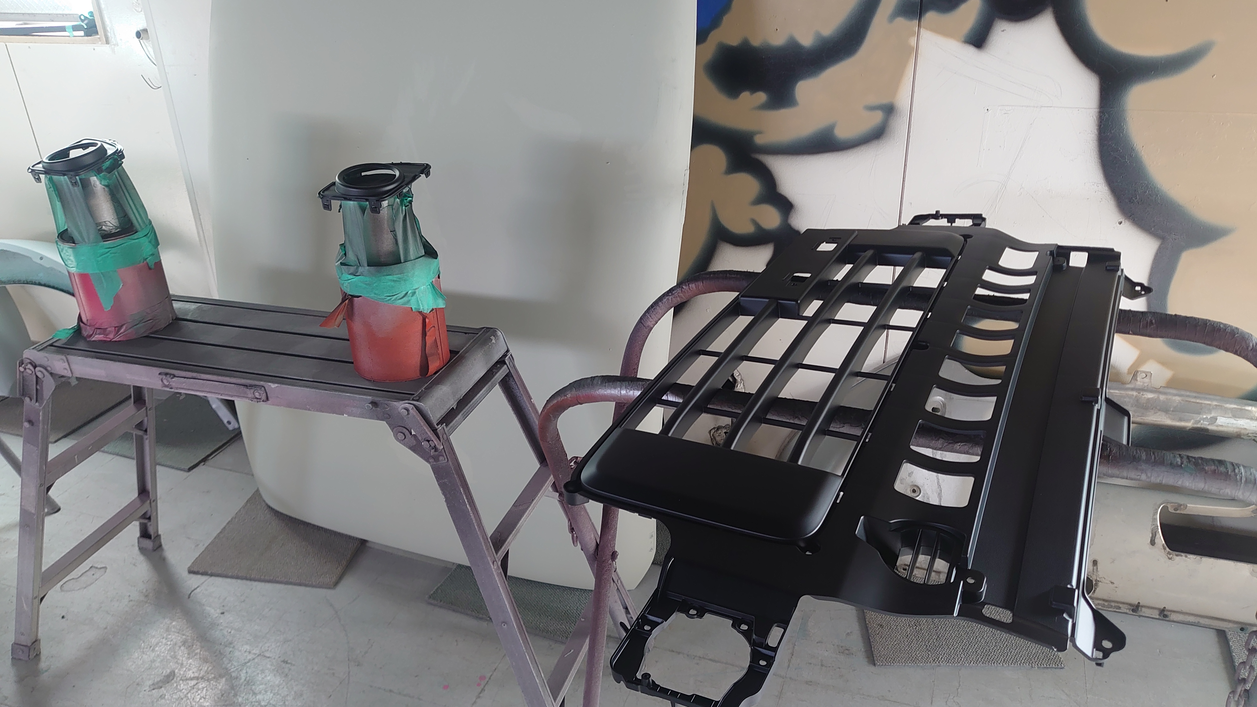 スズキ エブリイ フロントバンパー 黒素地ラジエターグリル マットブラック塗装でお預かりしました。