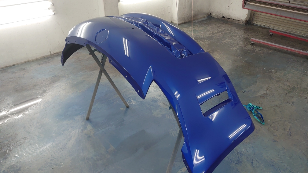 ワーゲン ゴルフ ボンネットフード、フロントバンパー傷へこみ鈑金塗装修理でお預かりしました。